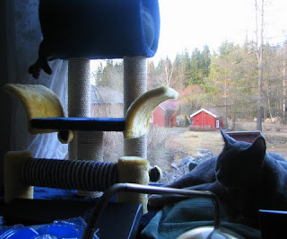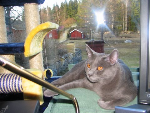 Samalla pitää toista huiskia nenään toisella tassulla ja toisella koittaa pitää kiinni paikastaan auringossa.
